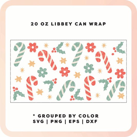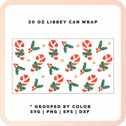 20oz Libbey Can Cup Wrap | Classic Candy Cane SVG