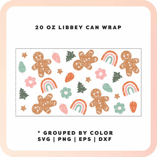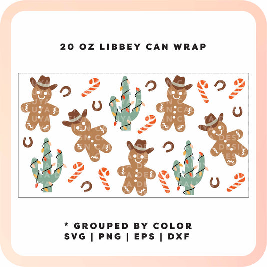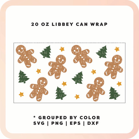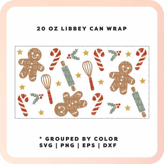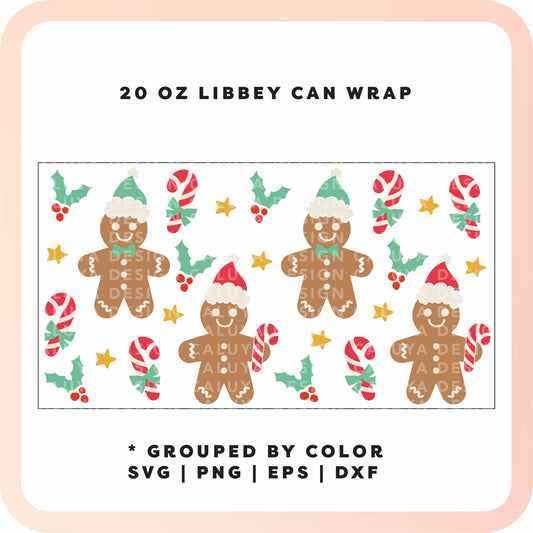 20oz Libbey Can Cup Wrap | Gingerbread Man Wrap SVG