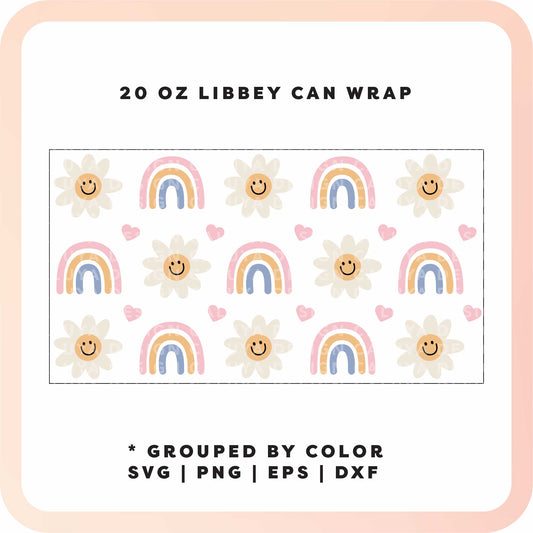 20oz Libbey Can Cup Wrap | Pastel Daisies SVG