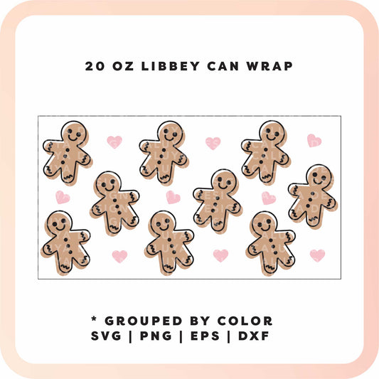 20oz Libbey Can Cup Wrap | Heart Gingerbread Man SVG