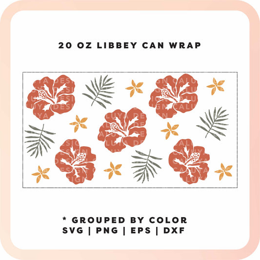 [ SVG Digital File] 20oz Libbey Can Cup Wrap | Tropical Hibiscus SVG