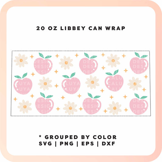 [ SVG Digital File] 20oz Libbey Can Cup Wrap | Floral Peach SVG