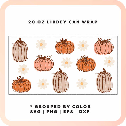 [ SVG Digital File] 20oz Libbey Can Cup Wrap | Daisy Pumpkin SVG