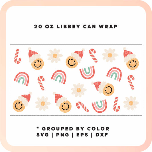 [ SVG Digital File] 20oz Libbey Can Cup Wrap | Groovy Santa Rainbow SVG