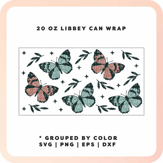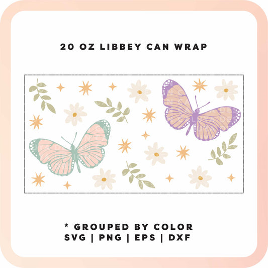 20oz Libbey Can Cup Wrap | Pastel Butterfly SVG