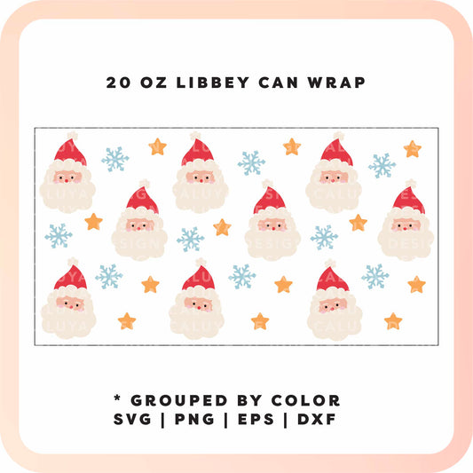 [ SVG Digital File] 20oz Libbey Can Cup Wrap | Classic Santa Face SVG