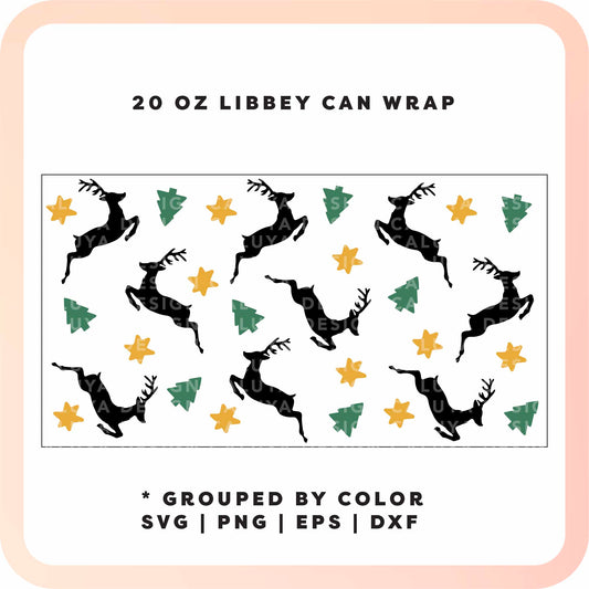20oz Libbey Can Cup Wrap | Reindeer Holiday SVG