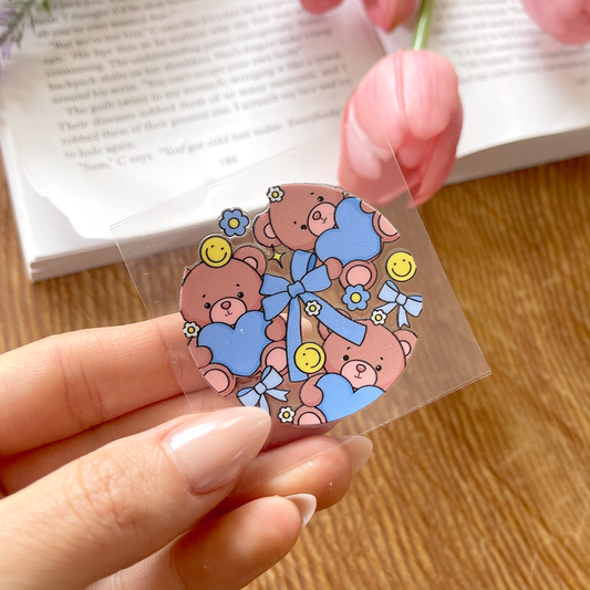 [ Double Sided ] Bookmark UV DTF Decal | Blue Teddy Bear