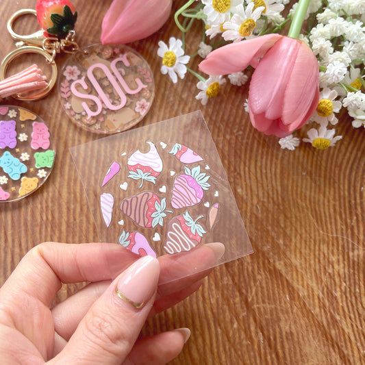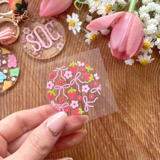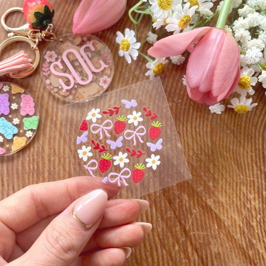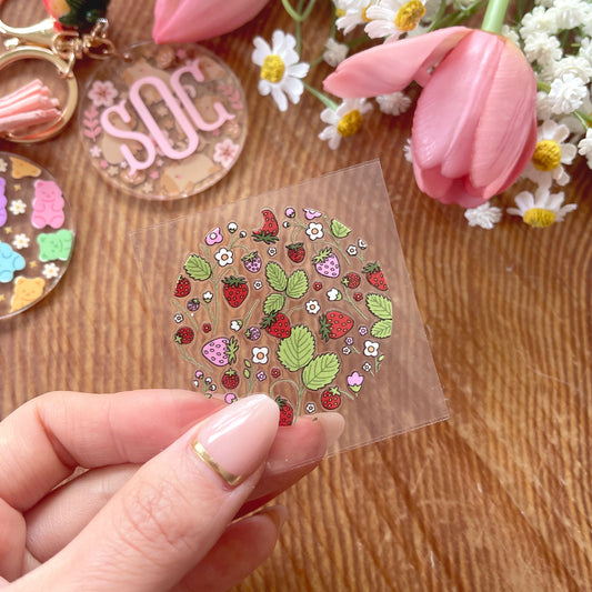 [ Double Sided ] Circle UV DTF Decal | Romantic Strawberry