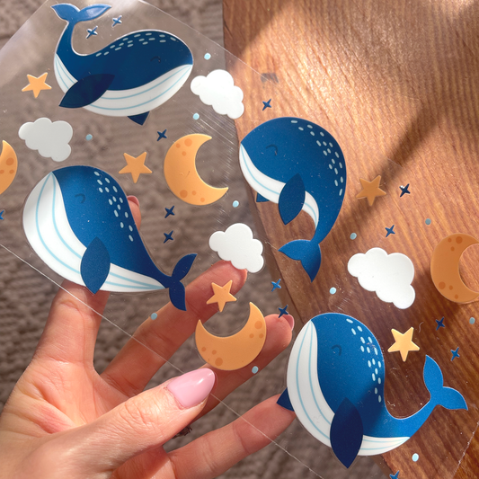 [ Double Sided ] 16oz Cup UV DTF Decal | Moon Whale