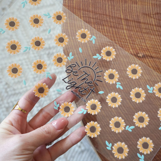 [ Double Sided ] 16oz Cup UV DTF Decal | Be The Light Sunflower