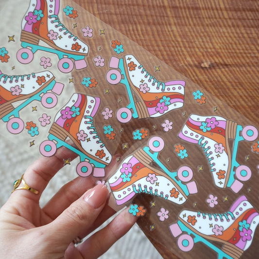 [ Double Sided ] 16oz Cup UV DTF Decal | Groovy Roller Skate