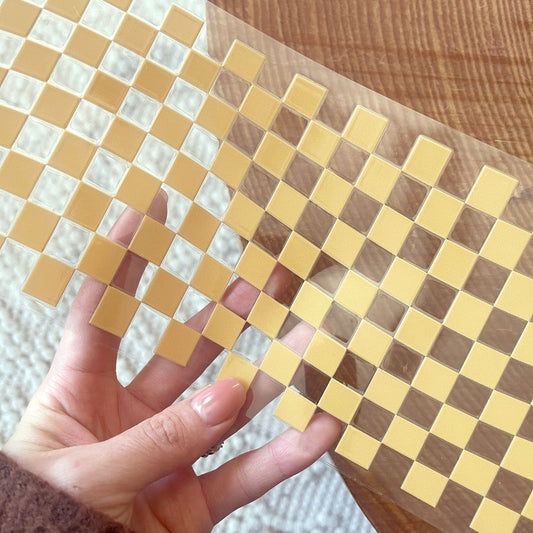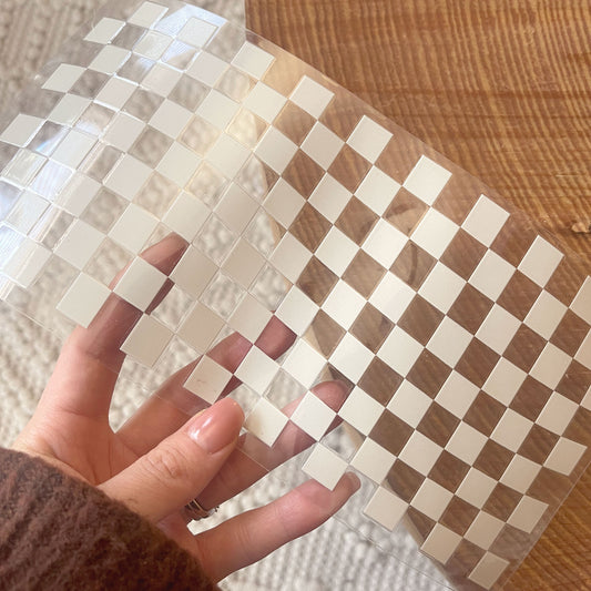 [ Double Sided ] Bookmark UV DTF Decal | Wavy Beige Checkered
