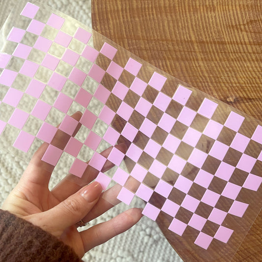 [ Double Sided ] 16oz Cup UV DTF Decal | Wavy Blush Checkered