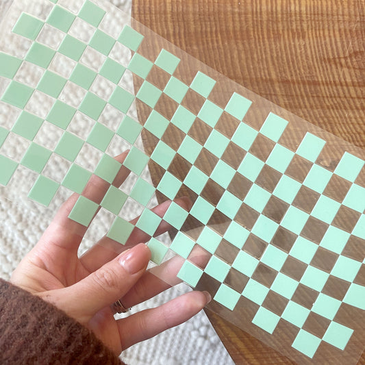 [ Double Sided ] 16oz Cup UV DTF Decal | Wavy Matcha Checkered