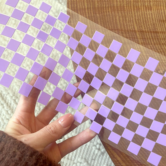[ Double Sided ] 16oz Cup UV DTF Decal | Wavy Amethyst Checkered