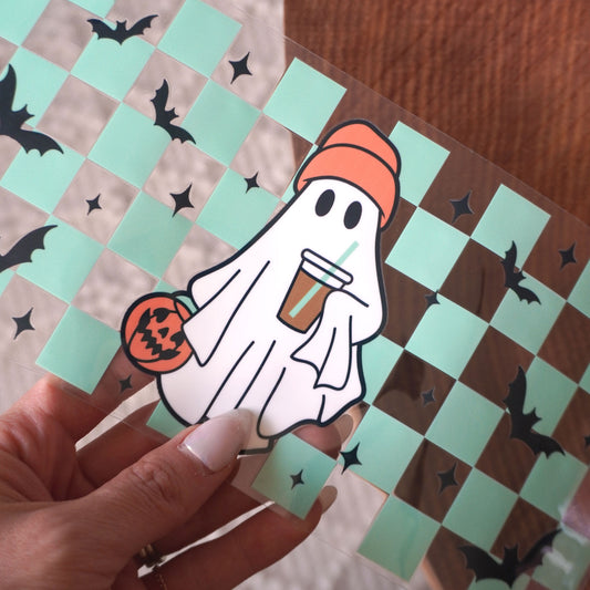 [ Double Sided ] 16oz Cup UV DTF Decal | Hipster Ghost