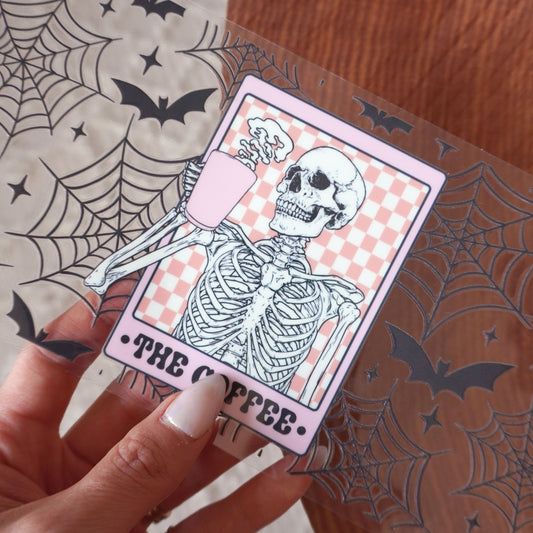 [ Double Sided ] UV DTF Transfer | Coffee Skeleton