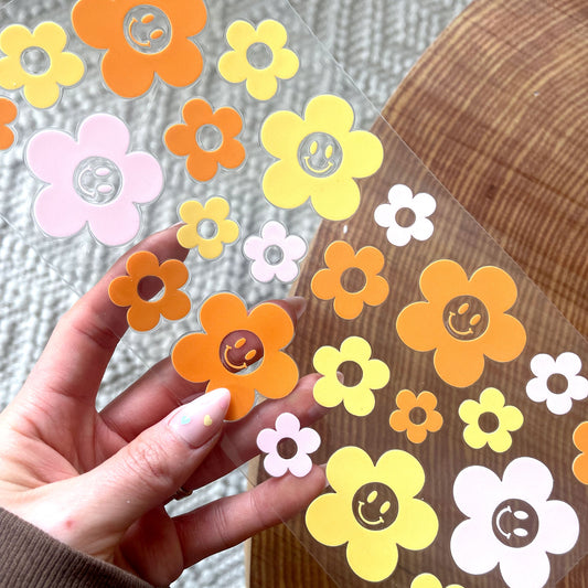[ Double Side ] 16oz Cup UV DTF Decal | Happy Flowers