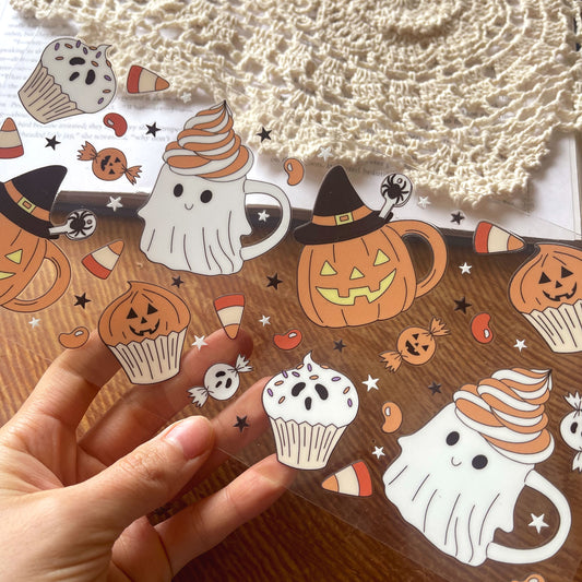 [ Double Sided ] 16oz Cup UV DTF Decal | Halloween Cafe