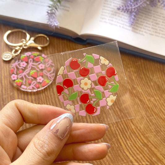[ Double Sided ] Circle UV DTF Decal | Retro Checkered Cherry