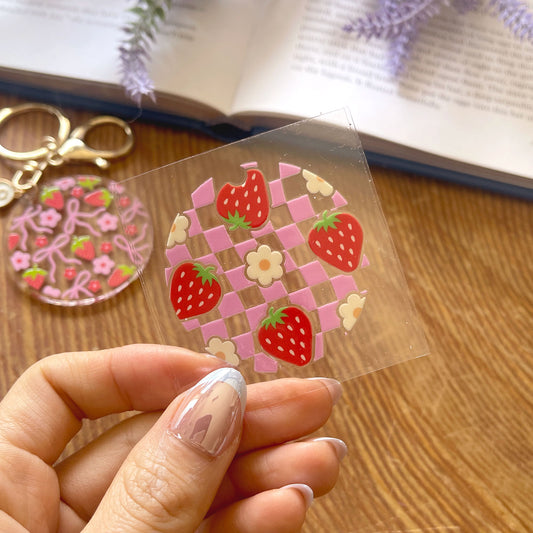 [ Double Sided ] Circle UV DTF Decal | Retro Checkered Strawberry