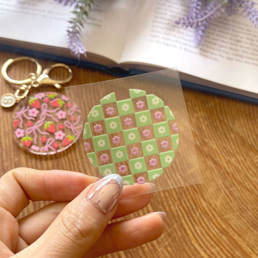 [ Double Sided ] Circle UV DTF Decal | Checkered Flower Matcha