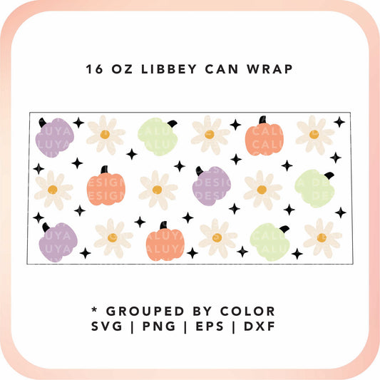 [ SVG Digital File] 16oz Libbey Can Cup Wrap | Daisy Pumpkin Cup Wrap