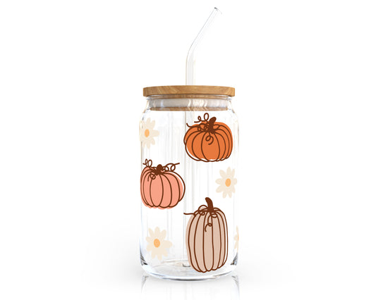 [ SVG Digital File] 16oz Libbey Can Cup Wrap | Daisy Pumpkin SVG
