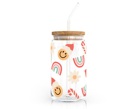 [ SVG Digital File] 16oz Libbey Can Cup Wrap | Groovy Santa Rainbow SVG