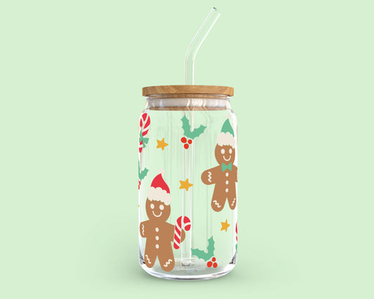 [ SVG Digital File] 16oz Libbey Can Cup Wrap | Gingerbread Man Santa SVG