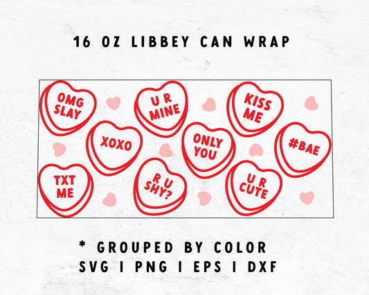 [ SVG Digital File] 16oz Libbey Can Cup Wrap | Heart Candy Outline SVG