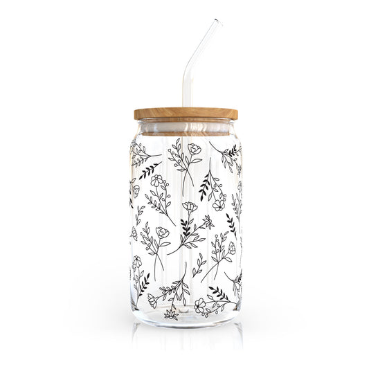 16oz Libbey Can Cup Wrap SVG | Wildflower Line Art SVG