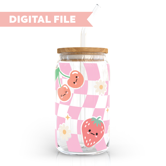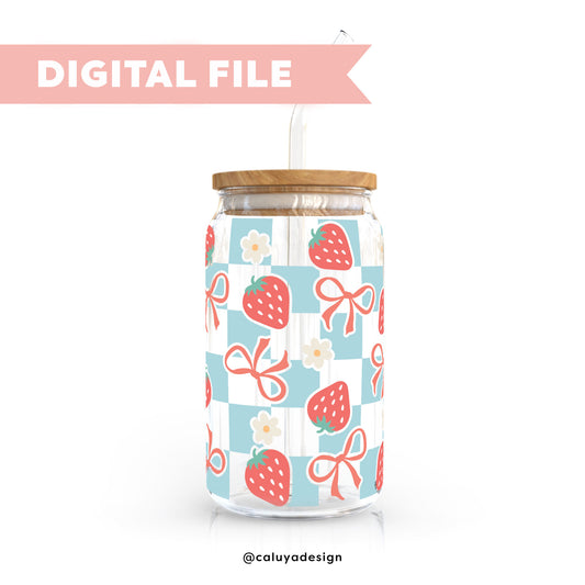 16oz Libbey Can Cup Wrap SVG | Romantic Checkered Strawberry SVG