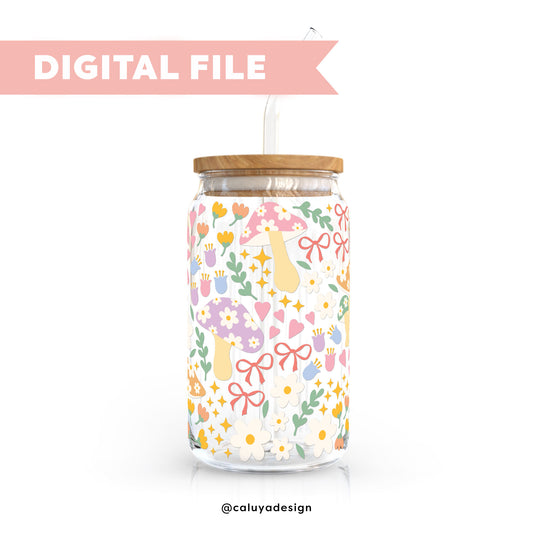 16oz Libbey Can Cup Wrap SVG | Mushroom Garden SVG