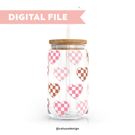 16oz Libbey Can Cup Wrap | Checkered Heart SVG