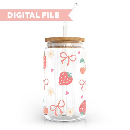 16oz Libbey Can Cup Wrap SVG | Strawberry & Bow SVG