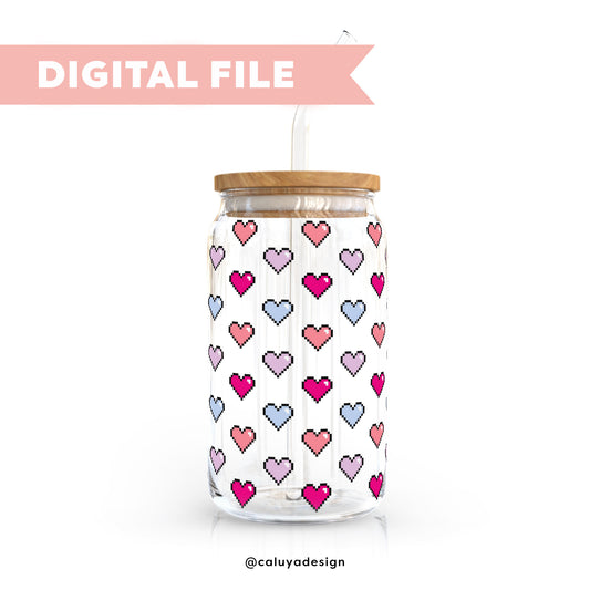 16oz Libbey Can Cup Wrap SVG | Pixel Hearts SVG