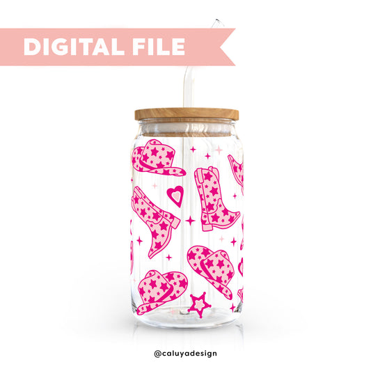 16oz Libbey Can Cup Wrap SVG | Pink Cowgirl SVG