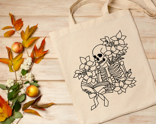 FREE Floral Skeleton SVG | Skeleton With Book Outline SVG