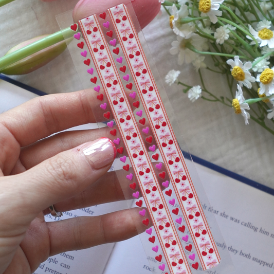[ Double Sided ] Bookmark UV DTF Decal | Cherry Washi Tape