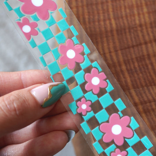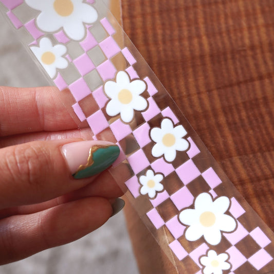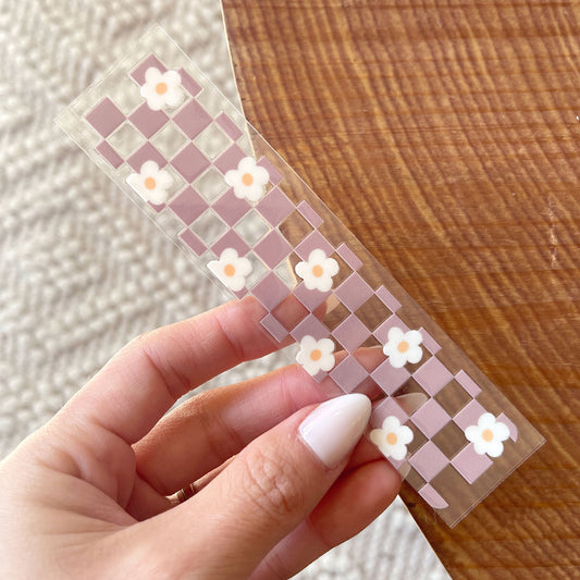 [ Double Sided ] Bookmark UV DTF Decal | Retro Checkered Pink Flower