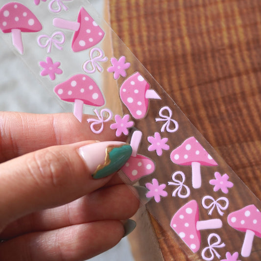 [ Double Sided ] Bookmark UV DTF Decal | Pink Mushroom