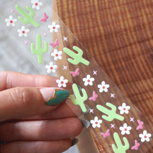 [ Double Sided ] Bookmark UV DTF Decal | Floral Cactus