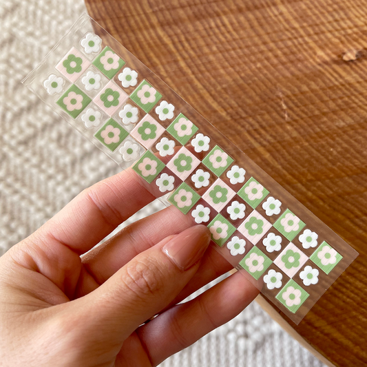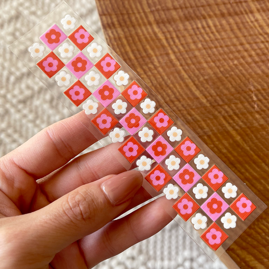 [ Double Sided ] Bookmark UV DTF Decal | Retro Checkered White Flower