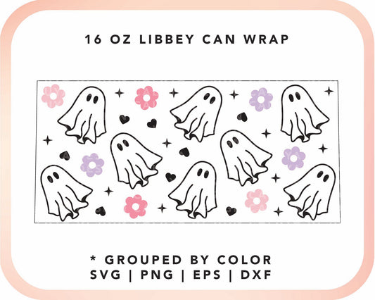 [ SVG Digital File] 16oz Libbey Can Cup Wrap | Cute Daisy Ghost Cup Wrap