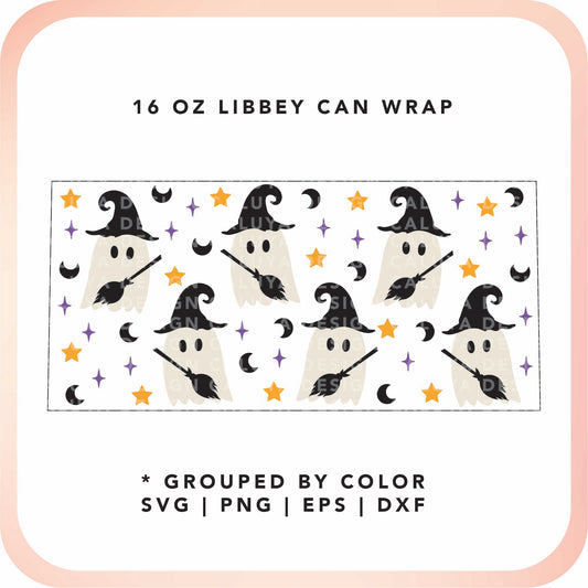 [ SVG Digital File] 16oz Libbey Can Cup Wrap | Witch Ghost Cup Wrap