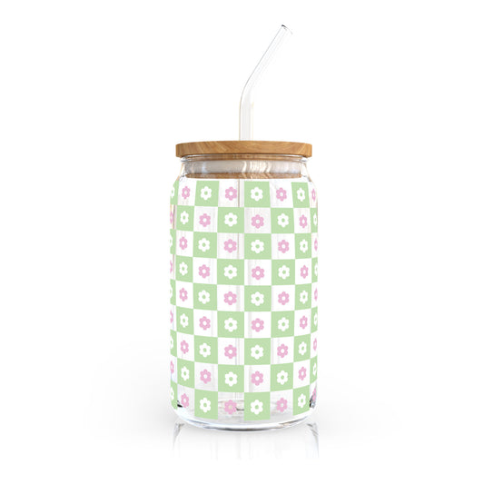 16oz Libbey Can Cup Wrap SVG | Checkered Flower SVG