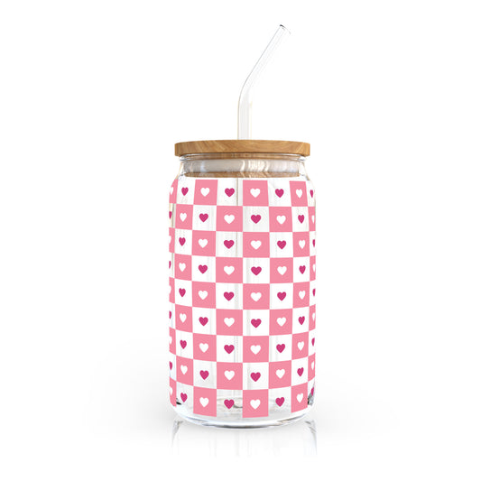 16oz Libbey Can Cup Wrap | Checkered Heart SVG