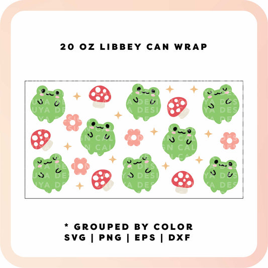20oz Libbey Can Cup Wrap | Kawaii Froggy Wrap SVG